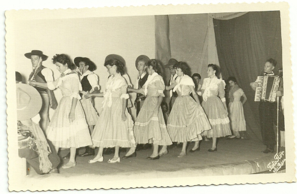 EM FILA – - DANÇA DO PEZINHO - Sonia Araujo-Olavo Zenni, Liege Zenni-SérgioMalmann, Ila Andrade-Nelson Rebelto.(encoberto), Carmen Andrade-Dino Rauber, Ligia Zenni-Jayme Araujo– Virginia Gomes e (Osvaldo Fresch (gaiteiro).
