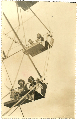 Depois de um lauto almoço, revigoradas as forças lá se vão elas divertirem-se na Roda Gigante.