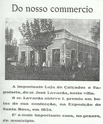 Na esquina da Praça da Independência e na esquina com a Casa Matter e a Igreja matriz – nova – ficava a residência e a casa de Calçados de José Lavarda.