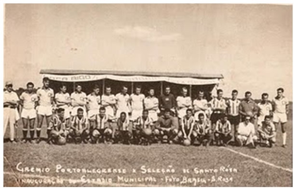 A estreia do Leo, no time do Grêmio foi, justamente em Santa Rosa, contra uma seleção local.